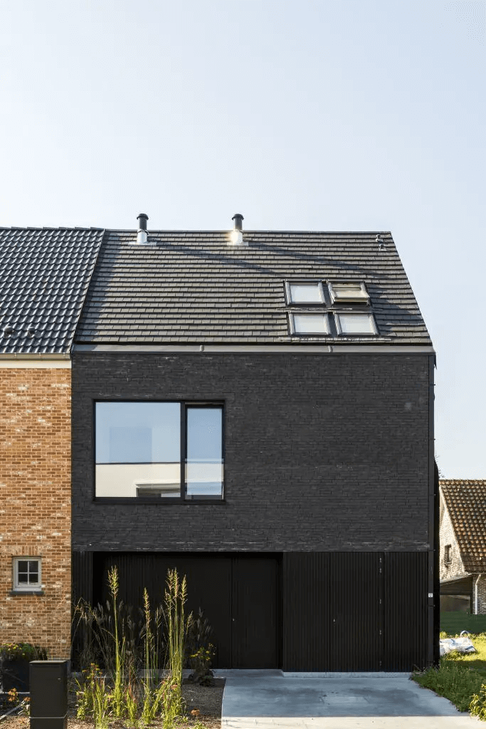 Citaat: “De woning werd aan de voorgevel vrij gesloten gehouden teneinde de privacy te garanderen. Eens binnen in de woning ontstaat een zeer groot ruimtegevoel door de diagonale doorzichten zowel in de diepte als in hoogte. Een ruime vide met een trap als eye-catcher verbindt het gelijkvloers met de eerste verdieping zodat kook- eet- en leefruimte met elkaar in relatie staan. Om het ruimtegevoel te versterken werden het aantal materialen beperkt zodat alle ruimtes visueel in elkaar overlopen.”