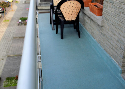 Bij een gietvloer op een terras buiten moet er ook zeker rekening gehouden worden met een minimum antislipgraad. Hier moet er gezocht worden naar voldoende antislip om gladheid en schuifpartijen te voorkomen en het mag niet te grof zijn om het onderhoud niet te moeilijk te maken.