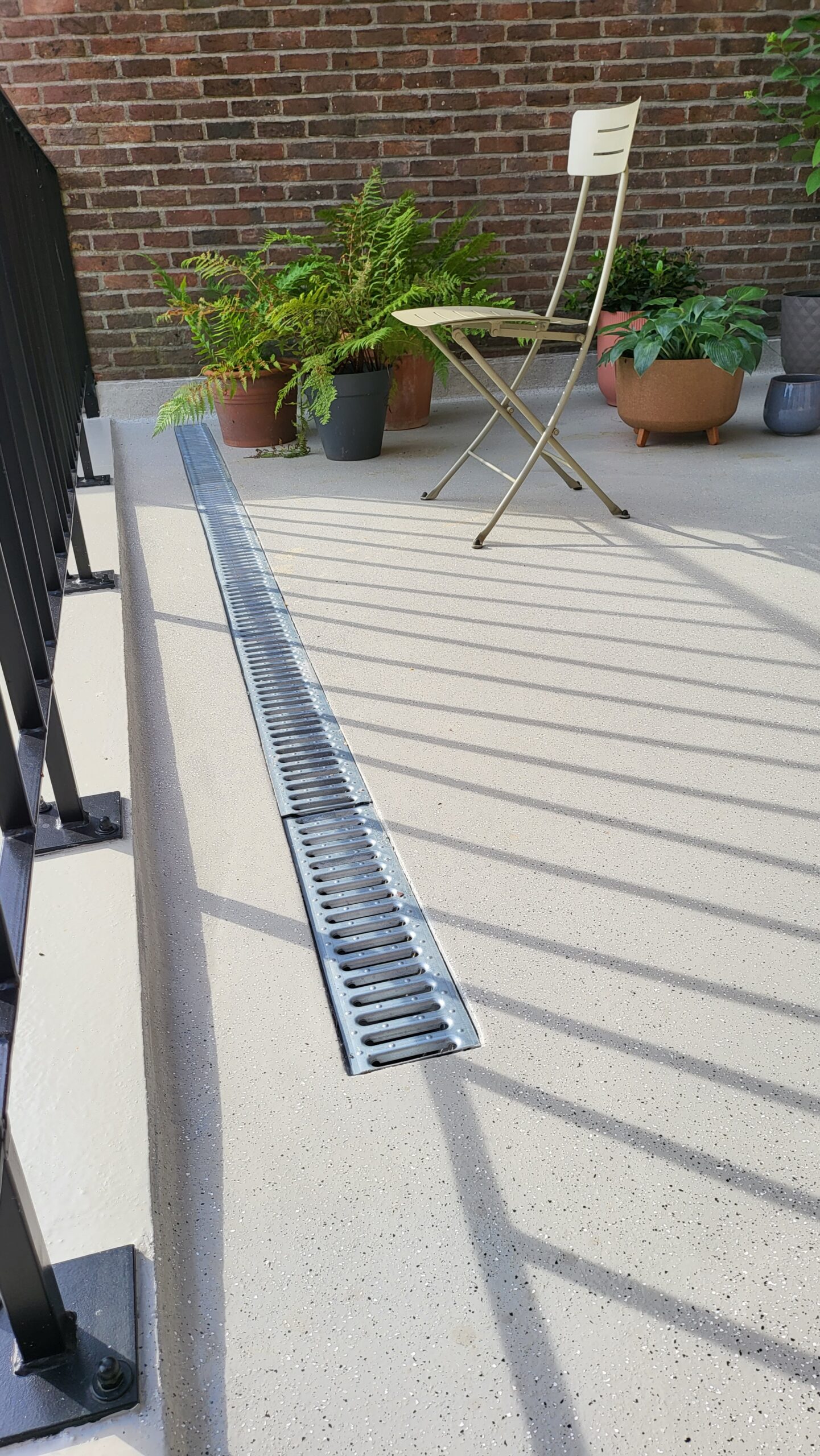 Een gietvloer kan ook buiten worden geplaatst, op voorwaarde dat het juiste systeem wordt gebruikt. Buiten vraagt extra bescherming tegen UV, vocht en temperatuurwissels. Daarom werken we uitsluitend met gespecialiseerde buitengietvloeren die snel uitharden, flexibel blijven en volledig vloeistofdicht zijn.