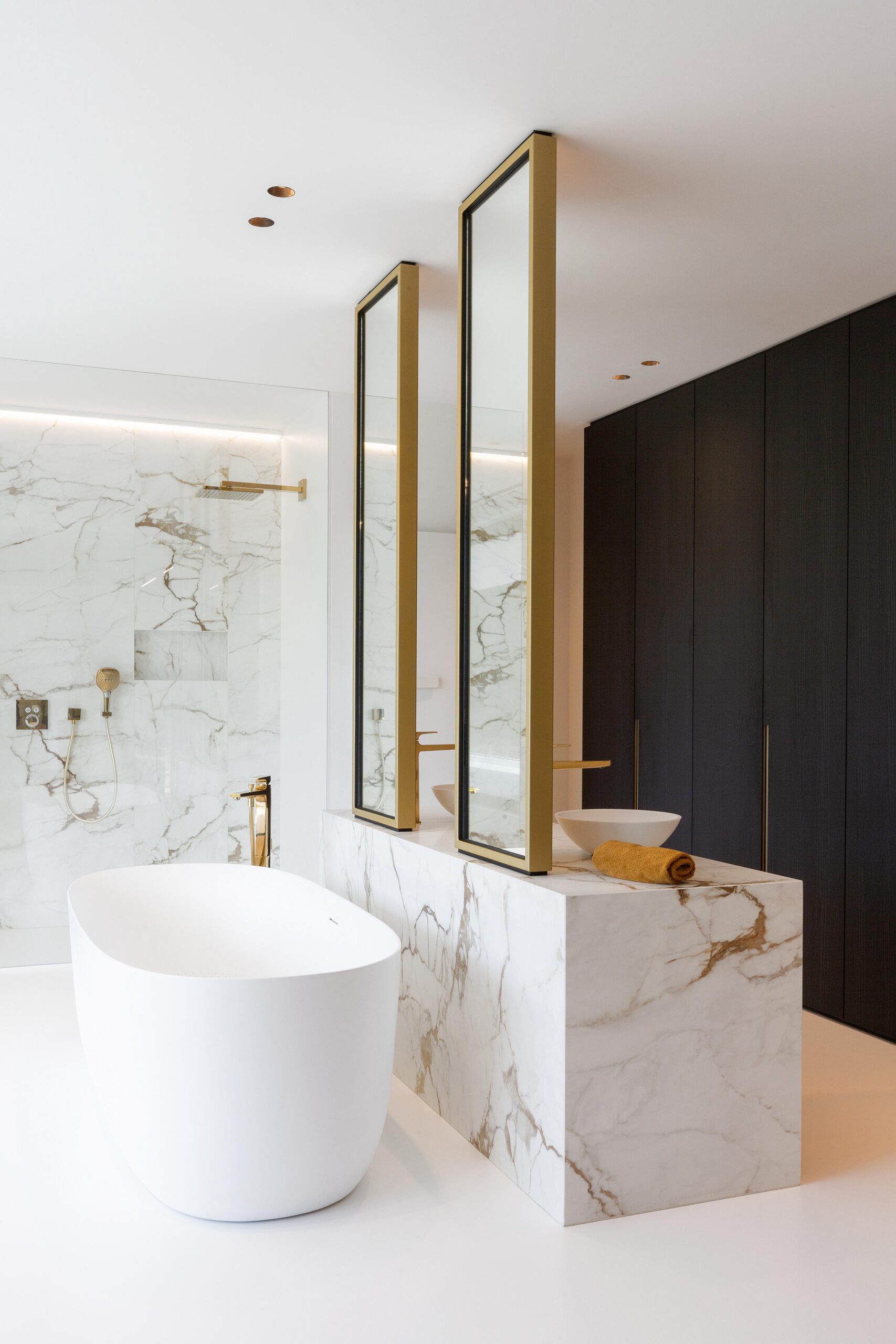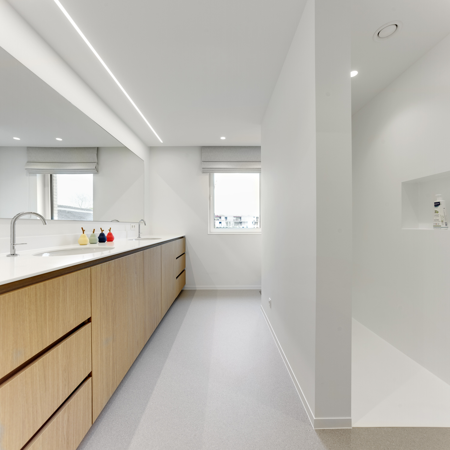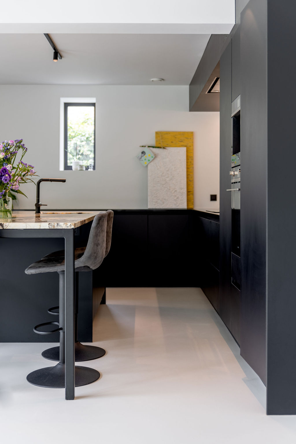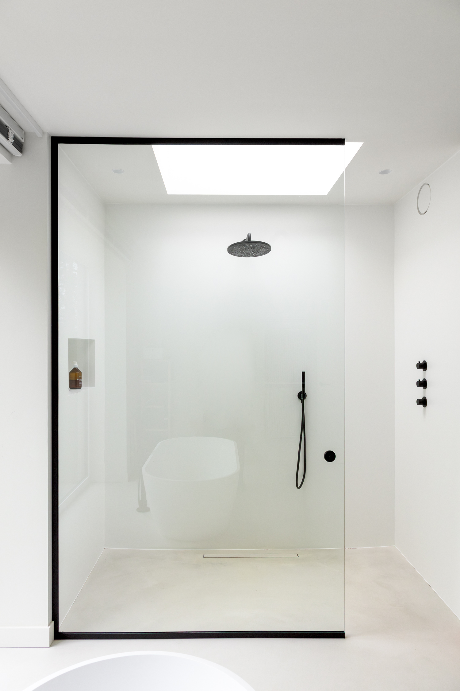 Wanden, trappen, douchewanden en zelfs meubels kunnen in dezelfde afwerking worden meegenomen. Zo creëer je een volledig naadloos en harmonieus interieur.