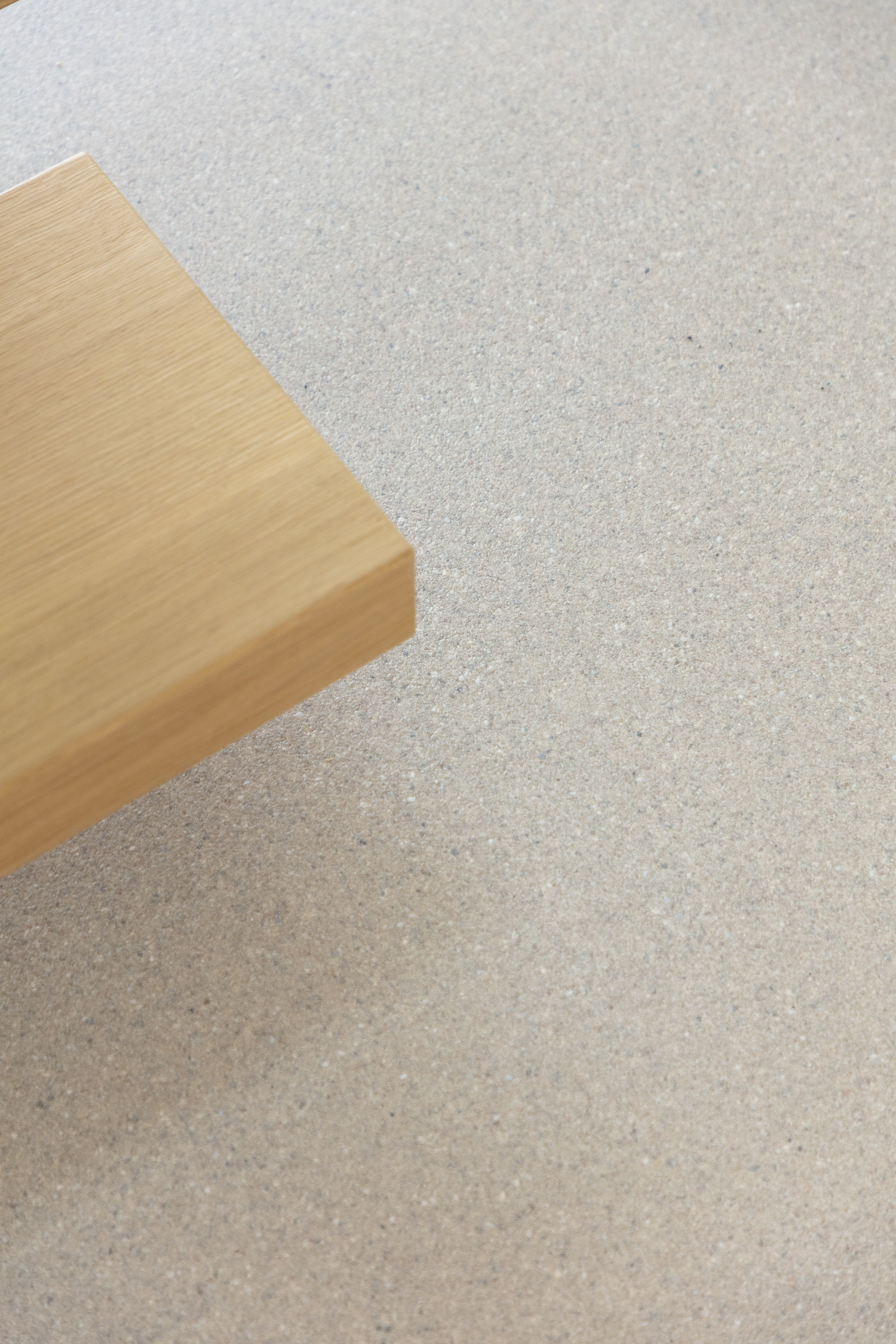 De troffelvloer is opgebouwd uit fijngemalen kwartskorrels en kunsthars. Dat zorgt voor een bijzonder sterke en slijtvaste vloer, ideaal voor een actief gezin met kinderen. De subtiele kleurnuances geven de vloer bovendien karakter én maken dat kleine vuiltjes minder opvallen – zo blijft het interieur er altijd verzorgd uitzien, zonder veel moeite.